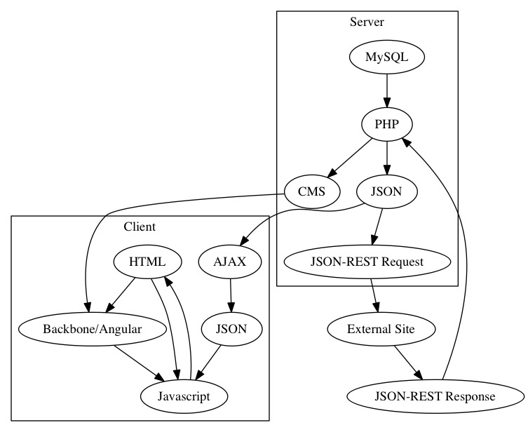 Web development can be considered in 2 major parts, the client and server sides. Each of these parts can further be divided into 2 subparts.