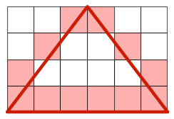 Don't be tempted to be artistic and make the pyramid "look right" by insisting on a 1-pixel point at the top. Be sure to meet the requirements exactly. Consider example 3 below and the image above, for example. Notice that the requirements imply that your rendering will be symmetrical left-to-right.