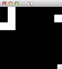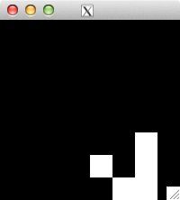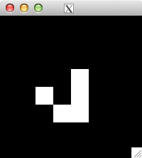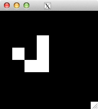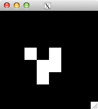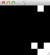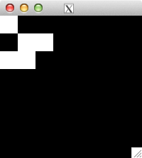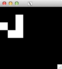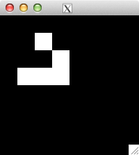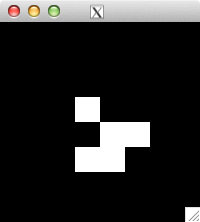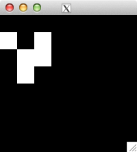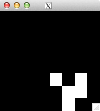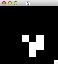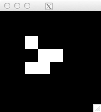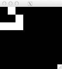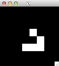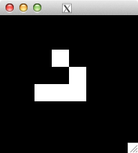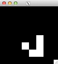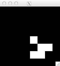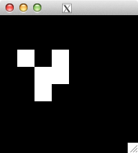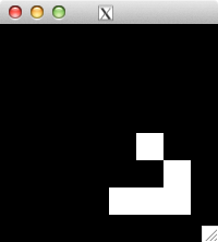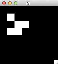 int glider[][2] = { {1,0}, {2,1}, {0,2}, {1,2}, {2,2} }; for( int i=0; i<5; i++ ) set_pixel( img, w, h, glider[i][0], glider[i][1], 255 ); for( int i=0; i<32; i++ ) { draw_image_grey( img, w, h ); life( img, w, h ); } draw_image_grey( img, w, h );